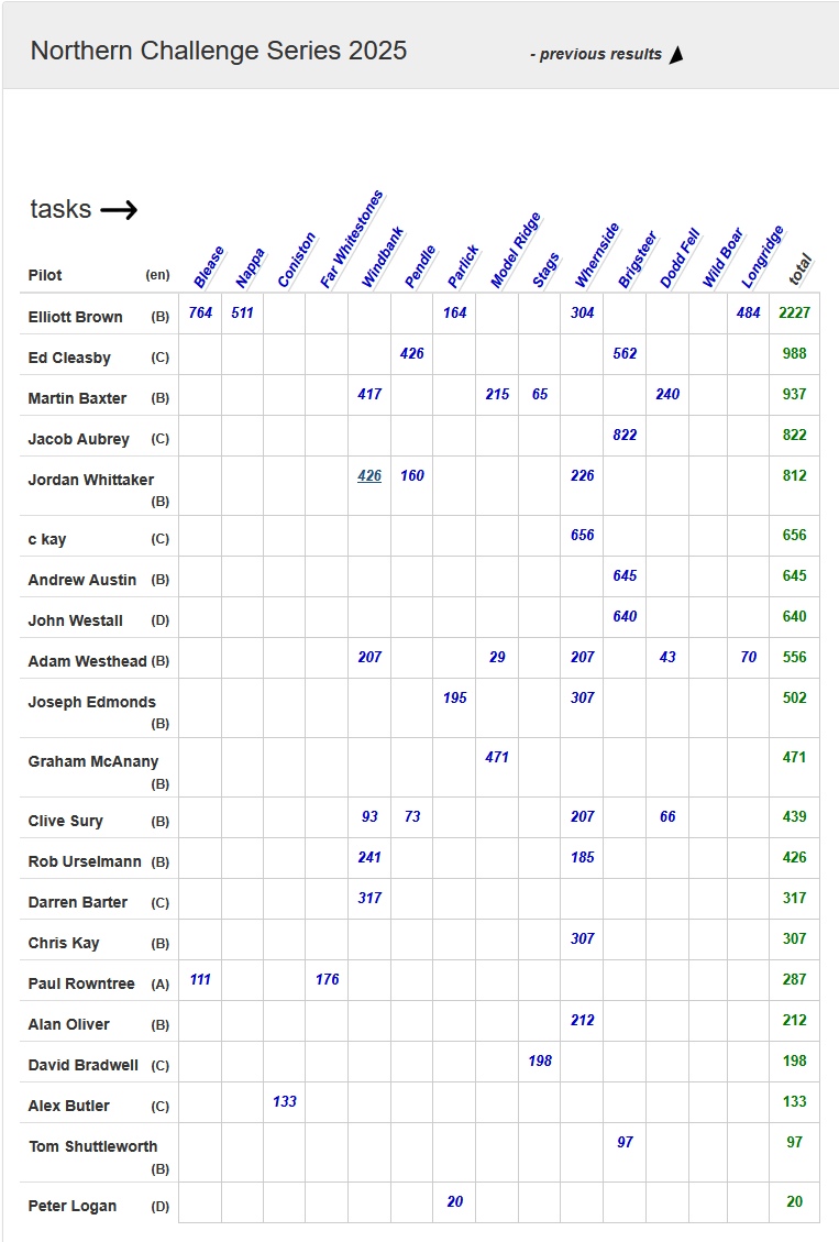 That’s a wrap for the year, no new flights entered since last month but its been a well populated competition this year. I’m looking forward to next year.